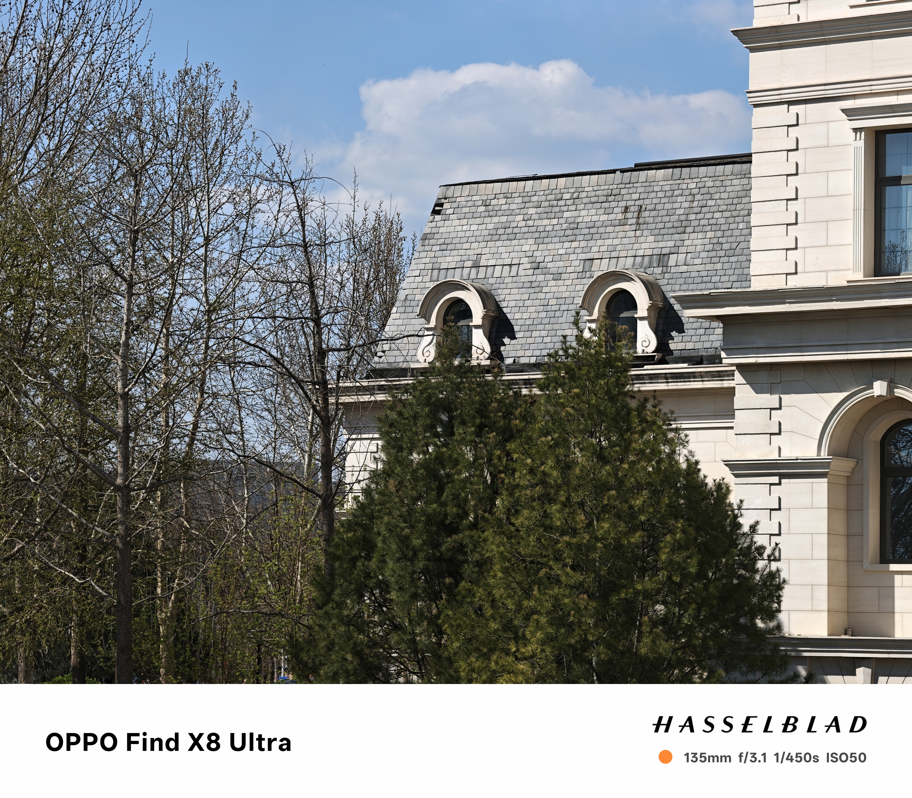 而135mm等效焦距的6X长焦镜头采用了索尼LYT600传感器,拥有1/1.95英寸的感光面积,f/3.1光圈,支持OIS光学防抖。这颗镜头的进光量较前代提升了240%。在拍摄动物、远处建筑或演唱会等场景时,Find X8 Ultra的长焦镜头能够轻松捕捉到远处的细节。