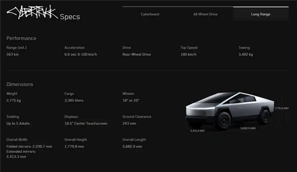 新版本的Cybertruck在续航能力上达到了563公里,相较于之前发布的AWD版本提升了40公里,显著增加了车辆的实用性和吸引力。