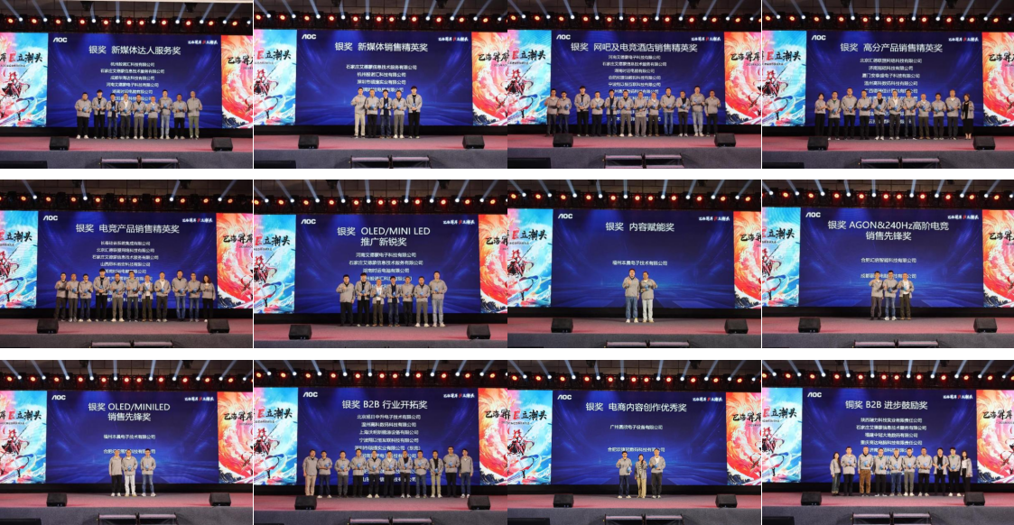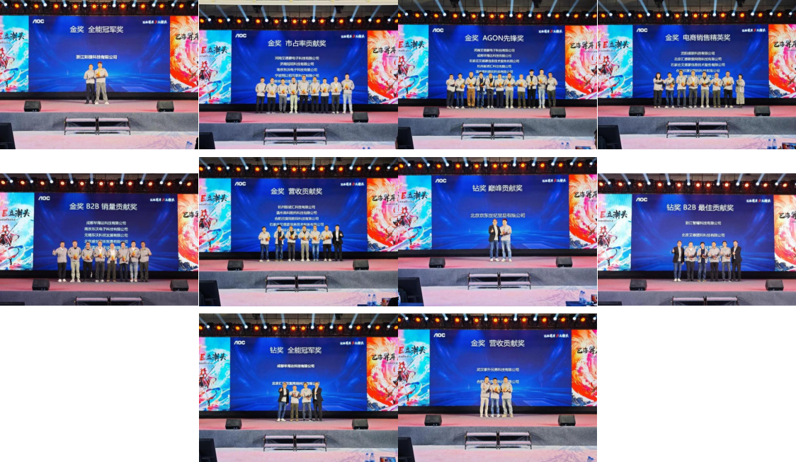 当然,在憧憬着未来辉煌的同时,AOC显示器也没有忘记对各位渠道伙伴在刚刚过去的2024年里所取得的斐然成绩给予奖励。特别为在B2B、B2C、Online等领域做出卓越业绩的商家伙伴,准备了冠军纪念奖、银奖、金奖、钻奖等诸多奖项,予以表彰。