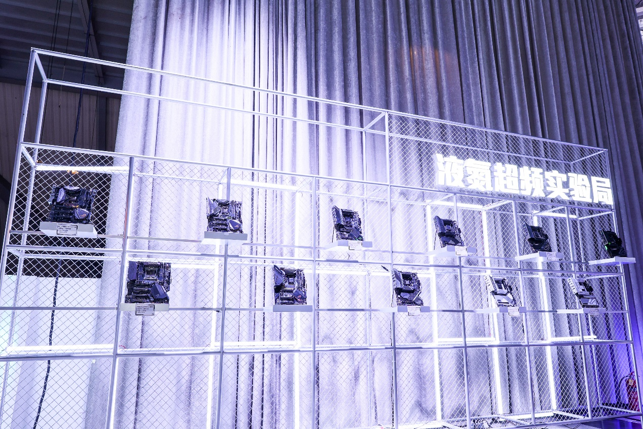 实验室核心区,由各种高性能装备为核心组建的量子计算中心,显然是ROG LAB灵感实验室给玩家们准备的科技盛宴豪华首秀。除了液氮超频实验局外,还有特效全开竞技场搭载新一代华硕AMD/Intel 800系列主板和高性能RTX 50系显卡,让玩家尽情享受各种游戏特效拉满的视觉冲击。