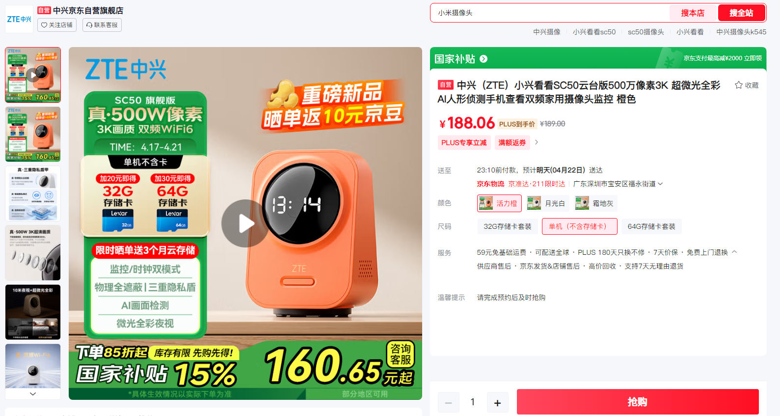 2024年中国消费级摄像头市场的销量超过5000万台,连续5年实现正增长,但在品类普及的浪潮下,作为家庭视频记录设备,家用摄像头的隐私安全问题也愈发凸显。此外摄像头品类也存在诸多“潜规则”问题:分辨率插值,隐形收费,广告多等等而中兴智慧家庭近期推出的新款智能家用摄像头——小兴看看SC50,则为行业提供了一个全新的范本。