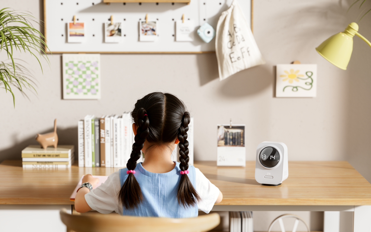 以往用户为了维护隐私安全,保证摄像头彻底处于休眠状态,通常会采用拔电源、贴胶布、盖布条等“物理手段”。为此小兴看看提供了更为便利的物理遮蔽设计,通过翻转摄像头,将其100%隐入机身下方,确保其百分百“闭眼”的效果。并且在物理遮蔽的功能上首次加入了时钟显示的巧思,有效的解决了“我”到底有没有被摄像头“偷看”的焦虑。尤其是在家庭场景下,普通的摄像头即使开了物理遮蔽也会因为同为黑色材质导致难以快速辨别,而在小兴看看身上,只要看到那个醒目的时钟就能倍感安心,无形间表达了对被监控方隐私空间的尊重,这种信任感和情绪理解更容易被使用双方所接受。