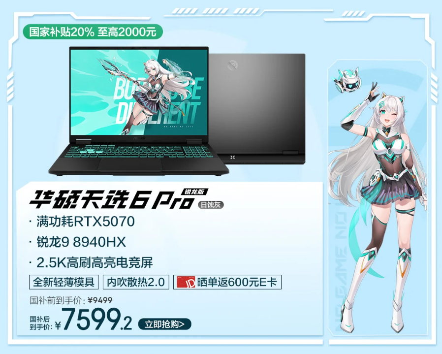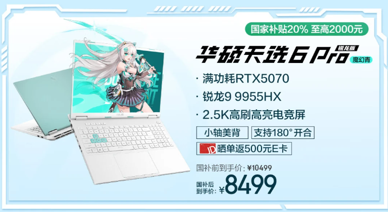 作为华硕深受年轻用户喜爱的游戏本产品,华硕天选系列预告新品上架,搭载RTX 5070显卡+锐龙9 8940HX配置的华硕天选6 Pro锐龙版即将焕新登场。它采用全新的模具打造,机身更轻,性能更出色,最重要的是叠加首发+国补+返E卡三重福利后,实际到手仅需6999元,可以说是目前RTX5070里性价比更高,更值的购买的游戏本,有需要的千万不要错过。