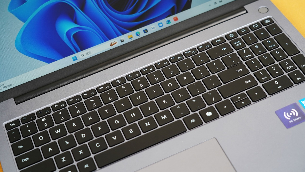 打开笔记本,C面的布局无不体现了这款产品的实用主义。对于经常与数字打交道的财务、数据分析用户来说,数据的准确输入是日常工作中的重中之重。Hi MateBook D 16配备的独立数字小键盘,大幅提升了数字输入效率,用户无需外接键盘也能快速完成报表录入等工作,不仅保持了办公桌面的秩序感,还保证了数据输入的准确性。键盘本身的打字体验也让人满意,1.5mm 的高键程设计,敲击时能感受到清晰的段落感和舒适的回弹性。即便连码多篇文章,也不会感到手指疲劳。