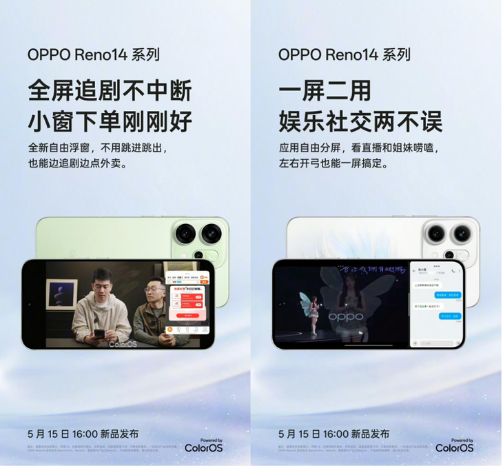 OPPO Reno14系列将会在5月15日16:00正式发布,届时不仅会公布更多手机相关的信息,而且也会带来更加惊喜的价格,准备入手的用户记得关注。
