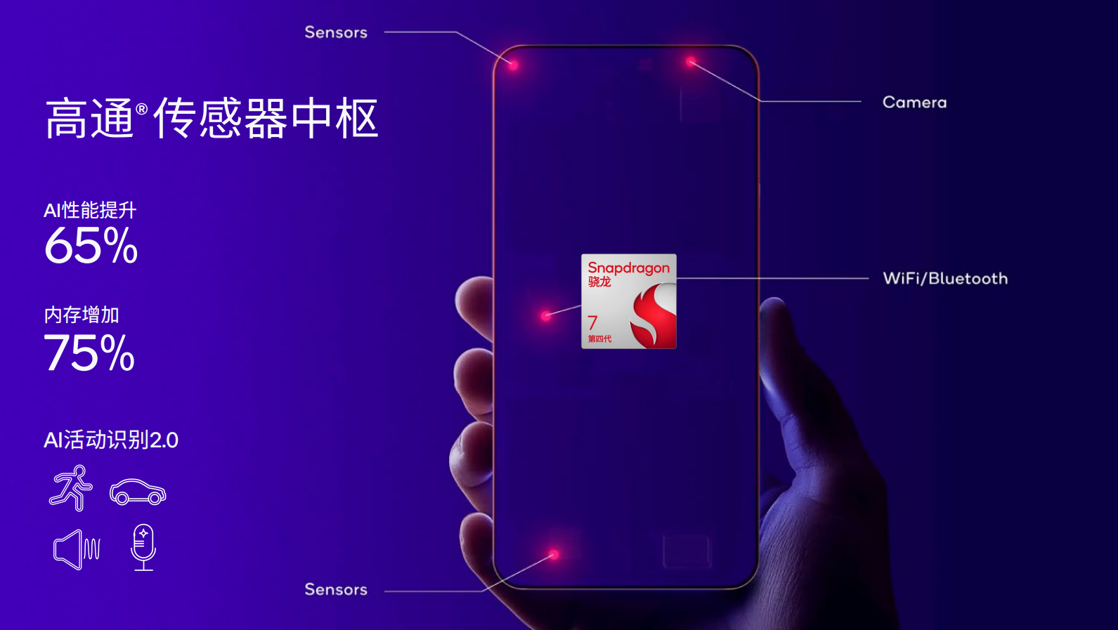 高通传感器中枢内存增加75%,功耗降低,借助情境感知能力,不仅提升用户日常操作便捷性,还实现智能显示等无障碍特性,缓解晕动症状。