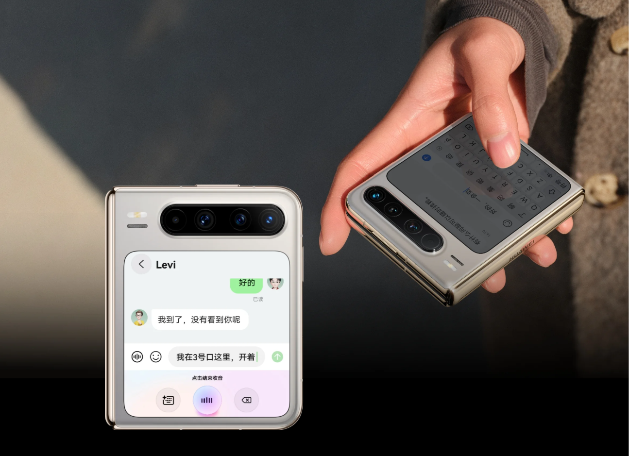 HUAWEI Pura X还充分利用了外屏的大尺寸优势,在外屏右滑即可开启与小艺的智能对话,当然,也可以通过外屏小艺私语、长按电源键、语音唤醒小艺,AI交互更加沉浸、更加方便。