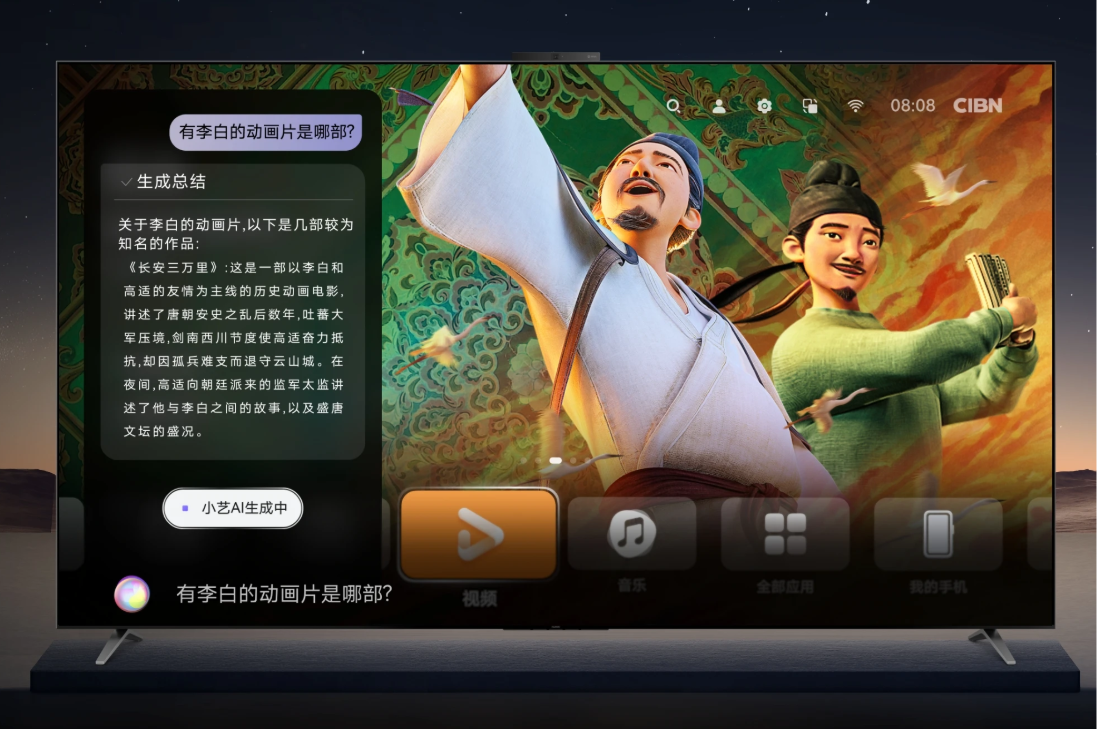 华为智慧屏 S6 Pro带来了前所未有的智能娱乐体验,首次搭载了小艺同源AI大模型,赋予AI搜片功能以全新生命力。用户仅需描述影片的模糊信息或经典台词,如“有李白的动画片是哪部”,即可迅速定位到《长安三万里》,让寻找心仪大片变得轻松快捷。