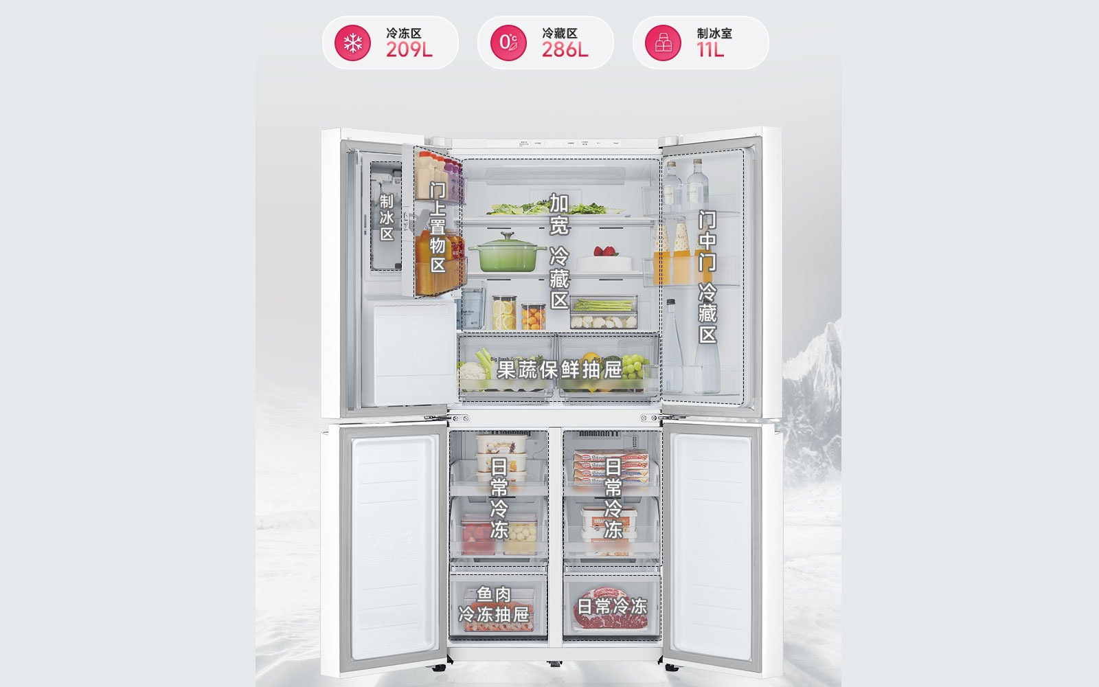 在厨房空间里,LG冰箱系列通过前沿科技与人性化设计,持续进化家庭储鲜体验。LG冰趣系列冰箱S653MWW87D搭载独有的“敲一敲”全景透视窗设计,用户只需轻敲两下即可查看内部,既减少冷气流失,又提升使用便捷性,兼顾节能与美观。同时,其自动制冰系统与多维风幕功能,让储鲜更加灵活。