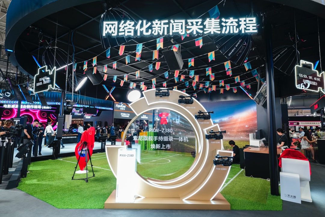 展区核心展品PXW-Z380作为索尼新一代旗舰手持摄录一体机,融合专业手持摄录一体机与Cinema Line两大核心高端产品优势。该机型采用双BIONZ XR芯片和三片式CMOS,配合F1.9恒定光圈镜头,带来创新性的手持机旗舰画质表现。内置AI芯片,与创新灵动的LCD设计相结合,大幅提升操作性能。强大的内容真实性验证能力、边缘技术处理以及增强的网络连接能力,显著提升了新闻制作流程的效率和灵活性。
