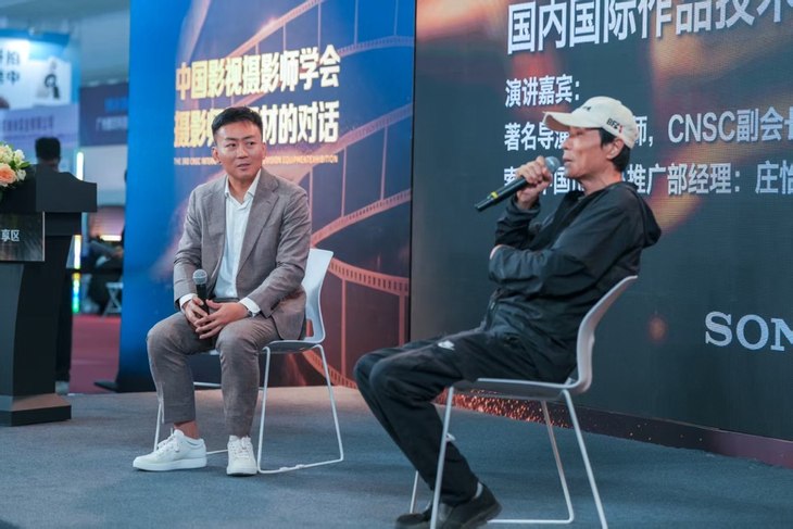 [导演、摄影指导、中国电影摄影师协会CNSC副会长赵小丁老师(右)与索尼(中国) 电子系统本部影像方案市场部经理庄怡辰(左)]