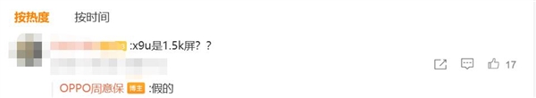 OPPO Find系列产品负责人周意保近日在与网友互动时明确表示,网传"Find X9 Ultra配备1.5K屏"的消息不实。