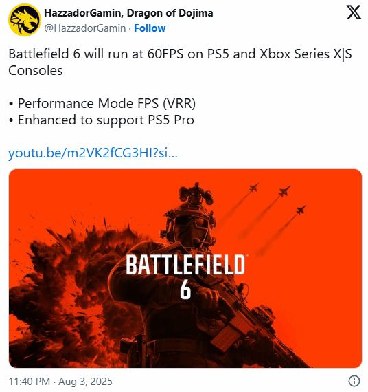 数毛社 DF 已经准备好测帧工具了,要是这次《战地 6》真能在 XSS 上实现 60 帧战场,建议给工程团队全体加鸡腿。要知道全平台同步优化这事,连某年度游戏都没做到呢(说的就是你《博德之门 3》XSS 版)!
