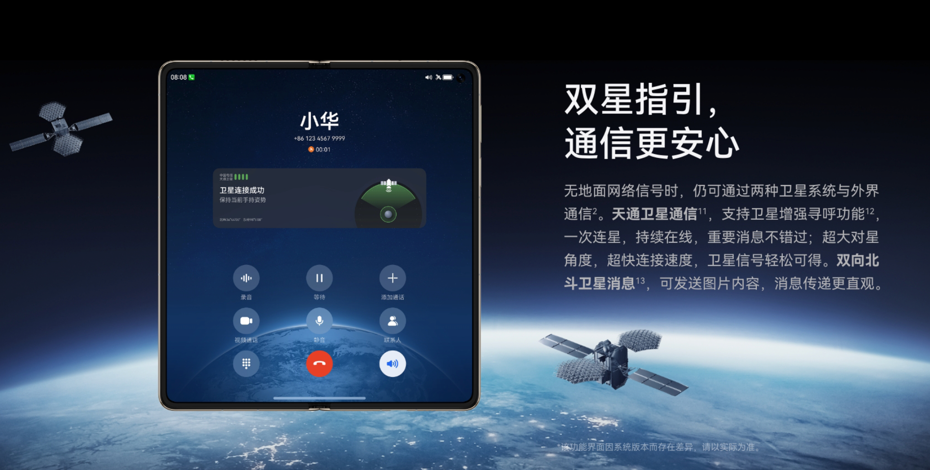 其中,天通卫星通信可接打电话和收发消息,双向北斗卫星消息支持发送携带地理位置信息的文字和图片信息。不仅如此,华为Mate X6的卫星通信功能,还具备出色的可靠性和稳定性——单次连星即可持续在线,避免用户错过重要信息;对星角度高达120度,抬手即可对准;最快9秒连接卫星,开启了卫星通信连接速度“个位数”时代。而低轨卫星上网则为未来的通信技术埋下重要伏笔。具备双网卫星通信能力的华为Mate X6,不仅让马杜罗总统在偏远地区调研时保持通讯畅通,也为普通用户进行探险、科研等活动时提供安全保障。