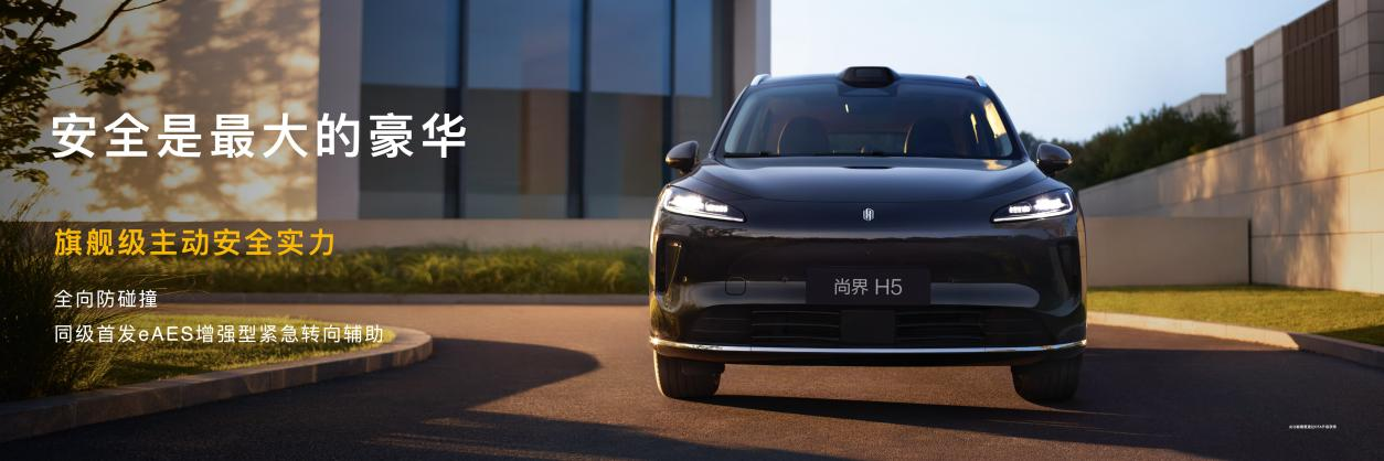 尚界H5具备旗舰级主动安全实力,搭载全向防碰撞,同级首发eAES增强型紧急转向辅助,边刹边让,应对复杂路况更灵活,进一步提升主动安全性能。