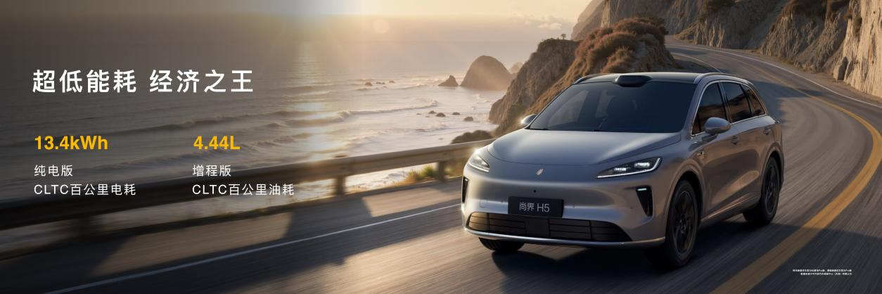 超低能耗,出行更经济。尚界H5纯电版CLTC百公里电耗13.4kWh,增程版CLTC百公里油耗4.44L,以出色的能耗表现降低出行成本,通勤、自驾畅行无忧。