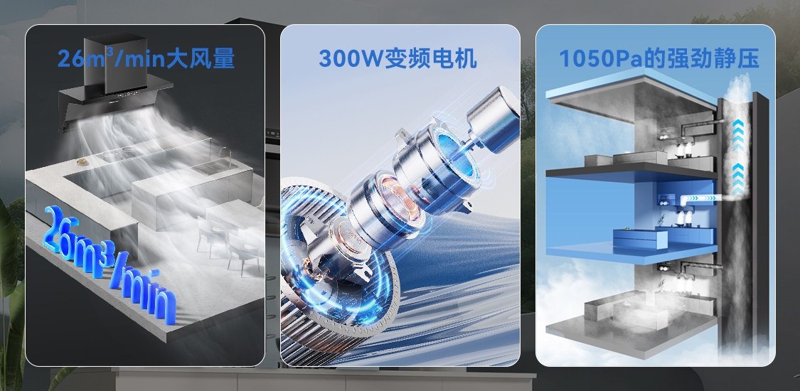 油烟不仅要吸得干净,更要排得彻底。很多用户家里明明烟机功率不小,但因为楼层高、烟道复杂或大风天气,排烟不畅、甚至出现油烟倒灌的情况。