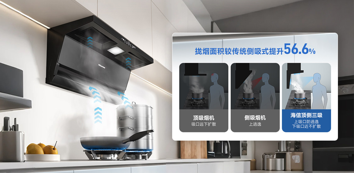 海信净魔方E套系烟灶:完美嵌入+顶侧三吸+变频强排,换新首选一步到位