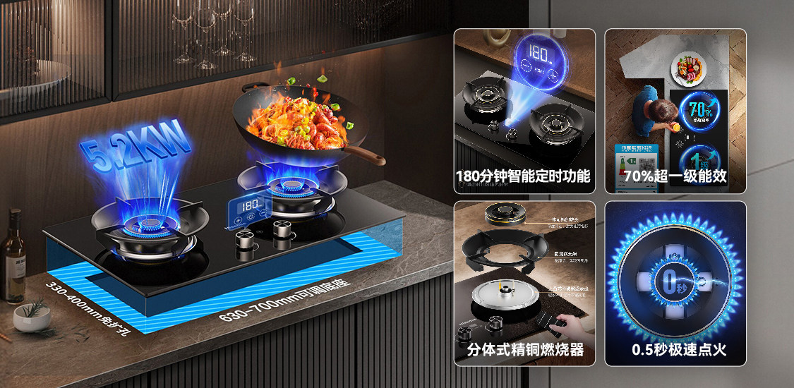 在节能方面,智能定时灶DB33达到了70%超一级能效,大幅降低燃气消耗。长期使用下来,节省的燃气费用可观,甚至足以抵消一台新灶的购入成本。更重要的是,它还具备六重安全防护设计与防爆玻璃面板,进一步提升使用安全性。换新不仅意味着厨房体验升级,更意味着为家人多添一份贴心保障。