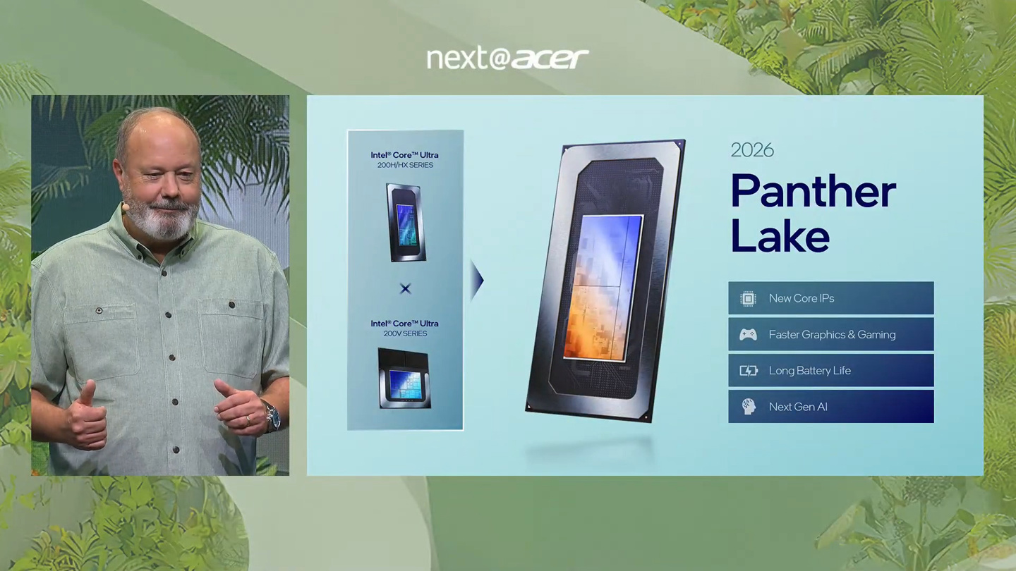 英特尔消费类CPU业务负责人Jim Johnson亦出席发布会,肯定了双方的合作成果,指出该机型是首批搭载英特尔下一代CPU的代表作之一,预计将在能效与AI性能方面树立新标杆。宏碁表示,Swift 16 AI笔记本电脑计划于2025年底正式上市,英特尔“Panther Lake”平台则将会在稍早前发布,并且在CES 2026上进行更多展示。
