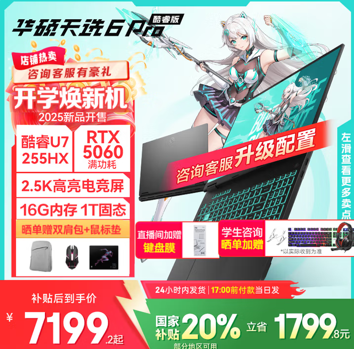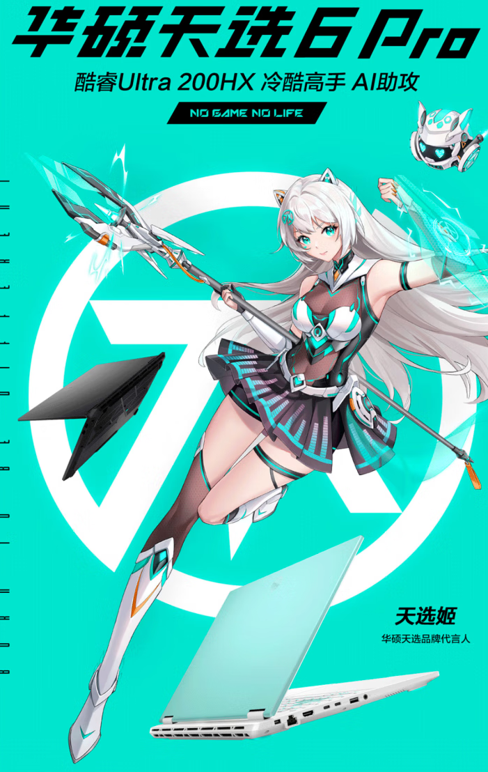 2.学生 / 上班族(游戏 + 创作):华硕天选 6 Pro 酷睿版,轻薄便携 + 高性价比,全能适配多场景;