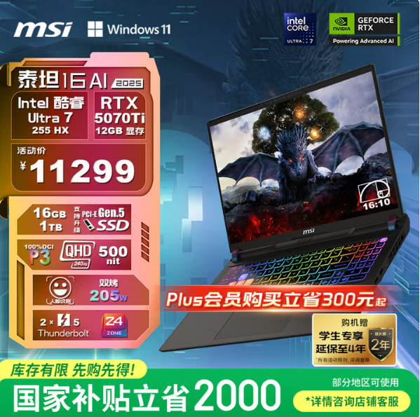 若为性能发烧友,追求最高画质与帧率,微星泰坦 16 AI 2025的强芯 + 强显组合可满足需求。