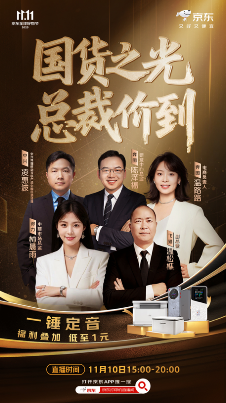 爆款打印机限时5折起!京东11.11国货之光总裁直播专场 四大品牌开启硬核宠粉