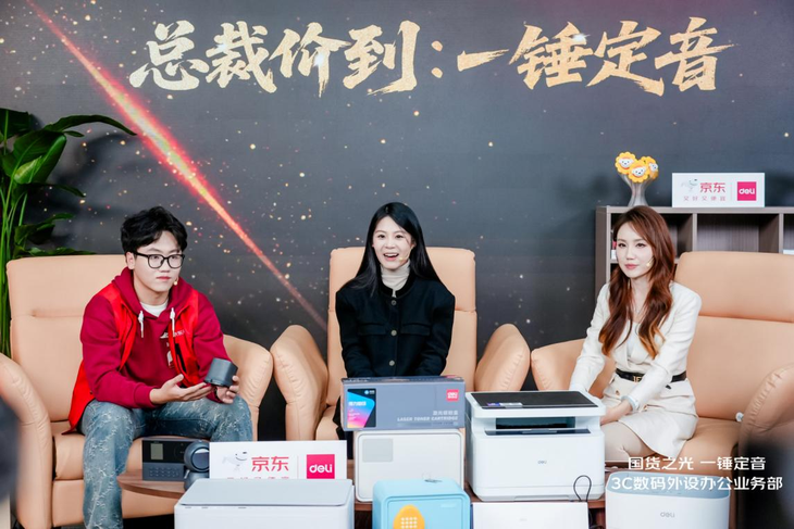 11月10日,京东11.11迎来一场精彩纷呈的“国货之光总裁价到”直播盛宴,得力、飞猫、中兴、奔图四大国民品牌总裁齐聚京东直播间,携手打造了一场融合技术溯源与价格直降的沉浸式购物体验。活动以“一锤定音”为核心玩法,通过总裁亲临现场、3D打印奖杯颁授、痛点砸蛋福利解锁等创新形式,让消费者在见证国货硬核科技实力的同时,也享受到多重优惠加码的极致性价比。在总裁亲临和福利加码的带动下,整场直播取得最高在线人数超3500人、观看量环比增长超110%的亮眼成绩。
