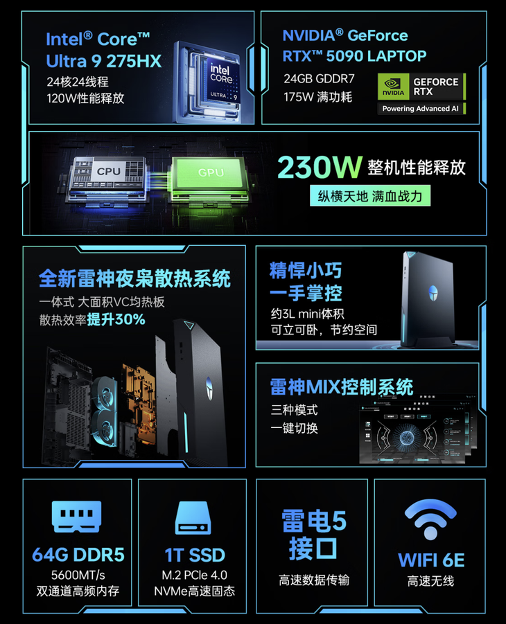 5090塞进迷你主机!雷神MIX G2上架售14999元起