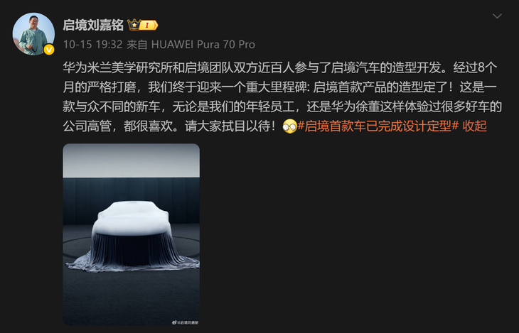 任正非亲自命名,启境汽车官宣!华为负责设计