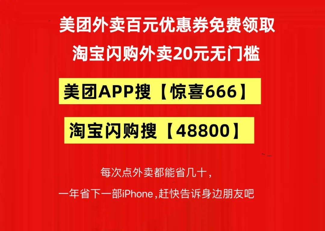 淘宝闪购外卖优惠券口令领取最新【48900】