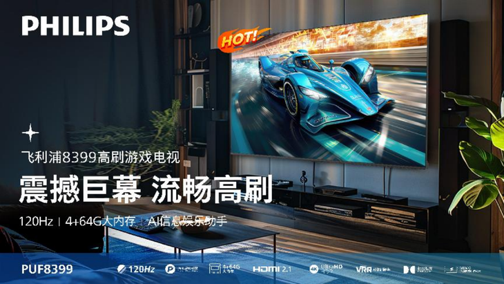 除拥有120Hz高刷新率外,飞利浦8399系列电视采用极致臻彩全面屏,将在展会现场成为新游试玩的”黄金搭档“。97%高屏占比,把边框的存在感降到最低,让游戏画面、影视剧情直接铺满视野;3840*2160分辨率,精准呈现枪械金属的冷冽光泽、爆炸场景的绚烂光影,没有色彩偏色,没有细节丢失。哪怕是国内外开发者打造的复古风游戏,那些低饱和度的像素质感,或是高对比度的赛博朋克画面,都能被精准复刻,让游戏原本的设计理念完整传递到你眼前。