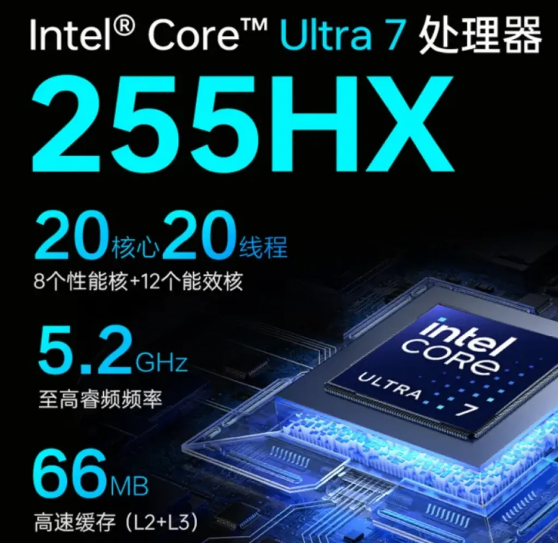 英特尔酷睿Ultra 7 255HX处理器基于全新Lion Cove架构的微架构打造,单核性能较前代提升18%,配合最高5.2GHz的睿频频率和66MB超大缓存,它能在复杂战场环境中维持极其稳定的帧生成节奏。无论是高速拉枪、瞬时压枪,还是在爆炸特效满屏的团战中保持流畅操作,搭载该处理器的游戏本都能让玩家专注于战术与反应,而非担忧硬件卡顿。