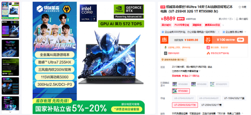 官方京东自营旗舰店:原价8889元,国补最高可省20%