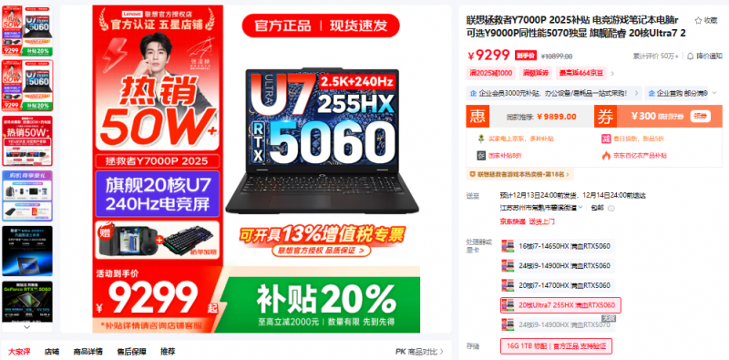 官方京东自营旗舰店:活动到手价9299元,国补至高立减2000元