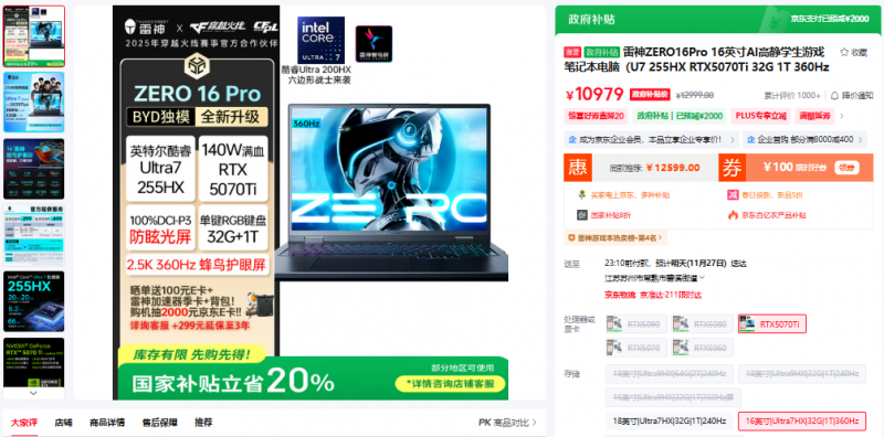 官方京东自营旗舰店:政府补贴价10979元起