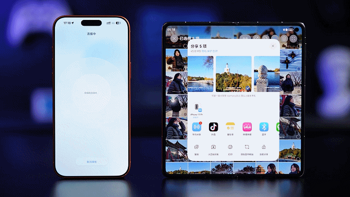 另外,华为也终于实现了与苹果设备的文件互传,给朋友分享图片、Live 图、文件时高速稳定、简洁易用且支持无损传输。