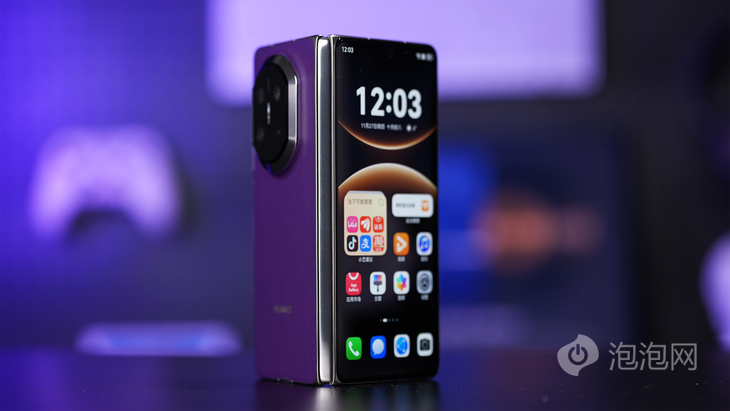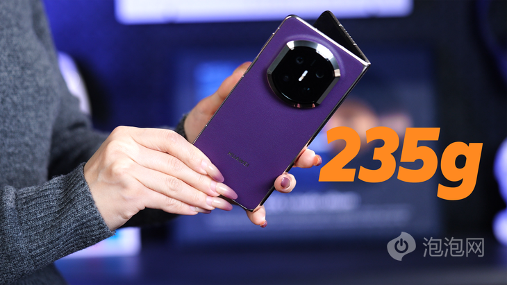 我手里这台幻影紫配色款,235g的重量握在手里完全没有坠手感,折叠状态下仅9.5mm厚度,单手握持外屏刷消息、接电话特别顺手,素皮纹理的触感刚好,不滑手也不沾指纹。