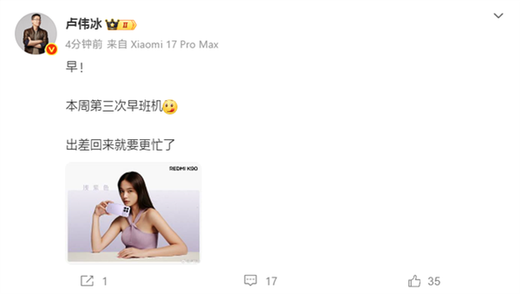 小米集团合伙人、总裁卢伟冰今天早上通过社交媒体表示,“出差回来就要更忙了”。结合网友评论和之前的多方爆料,卢伟冰显然是暗示小米将在近期推出小米17 Ultra和小米NAS等重磅新品,这将成为小米2025年的压轴大戏。