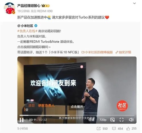 Redmi产品经理胡馨心正式预告,Redmi Turbo5系列新品正加速推进。