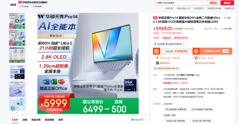 华硕无畏Pro 14酷睿版2025(Ultra 5 228V):