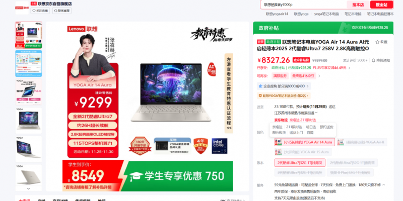 联想YOGA Air 14 Aura AI元启版(酷睿Ultra 7 258V):