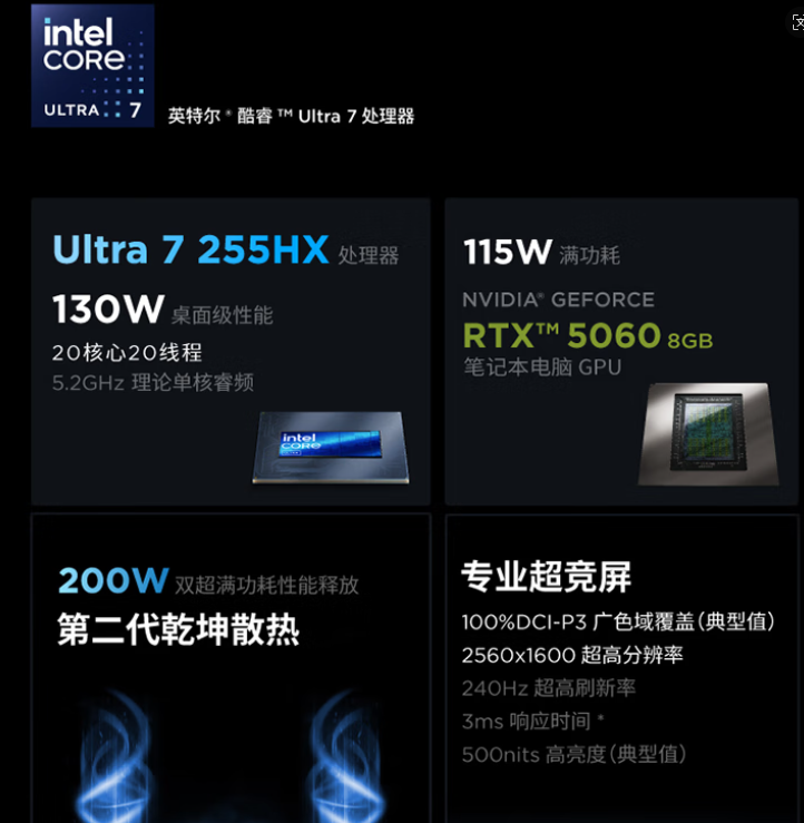 在2025年的游戏本市场,玩家对“打游戏的笔记本电脑”的要求早已不止于“能玩游戏”——既要满足《CS2》《黑神话:悟空》等游戏的高帧率竞技需求,又要兼顾日常学习中的4K剪辑、3D建模等生产力任务,同时还要兼顾宿舍使用的静音、便携特性。而英特尔酷睿Ultra 7 255HX处理器的出现,彻底打破了性能、便携、散热的平衡困局,成为新一代游戏本的核心标杆。以下两款搭载该处理器的机型,覆盖不同使用场景,是2025年打游戏的笔记本电脑的优选之选。