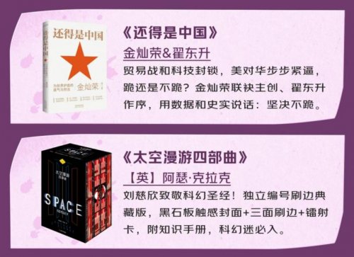面对复杂的国际形势,不少读者渴望通过书籍明晰时代脉络。金灿荣与翟东升合作的《还得是中国》以扎实的数据和史实为支撑,深入剖析中美博弈背后的逻辑,回应贸易战与科技封锁下的时代之问,传递出“坚决不跪”的民族自信,助力读者清晰把握时代脉搏。对宇宙奥秘的探索与科学人文的思考,同样是拓展认知的重要维度,科幻迷不妨收藏阿瑟·克拉克的《太空漫游四部曲》,这部被刘慈欣致敬的“科幻圣经”,不仅有黑石板触感封面、三面刷边、镭射卡等极致工艺,更搭配专属知识手册,为阅读增添深度。