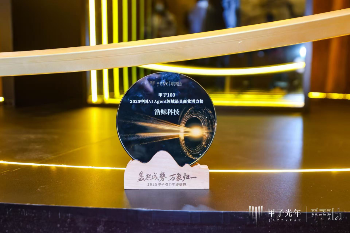浩鲸科技荣获甲子光年「2025中国AI Agent最具商业潜力企业」