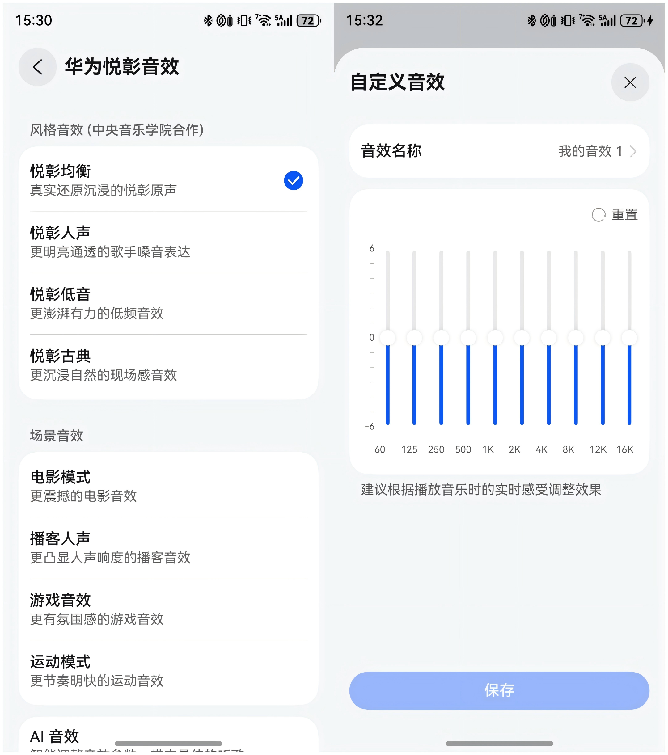 华为 FreeBuds Pro 5内置多种悦彰音效,用户可以根据自己的喜好进行选择,其中携手中央音乐学院联合打造的风格音效可以让音乐播放呈现出不同的风格。