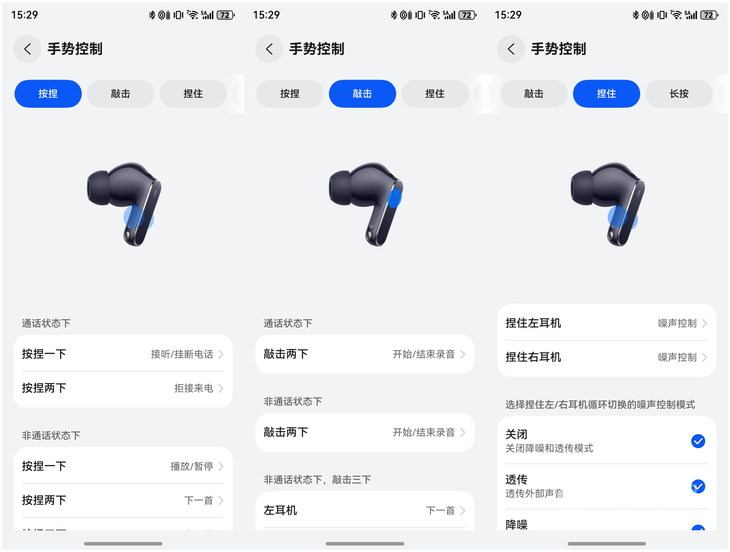 华为 FreeBuds Pro 5的交互方式也极为丰富。除了常规的敲击、长按,FreeBuds Pro 5 还支持滑动调节音量和按捏切换降噪/透传模式,操作逻辑直观且不易误触。配合高精度佩戴检测传感器,摘下耳机自动暂停播放,戴上即恢复,省去手动操作。这些细节设计极大提升了日常使用的便捷度。