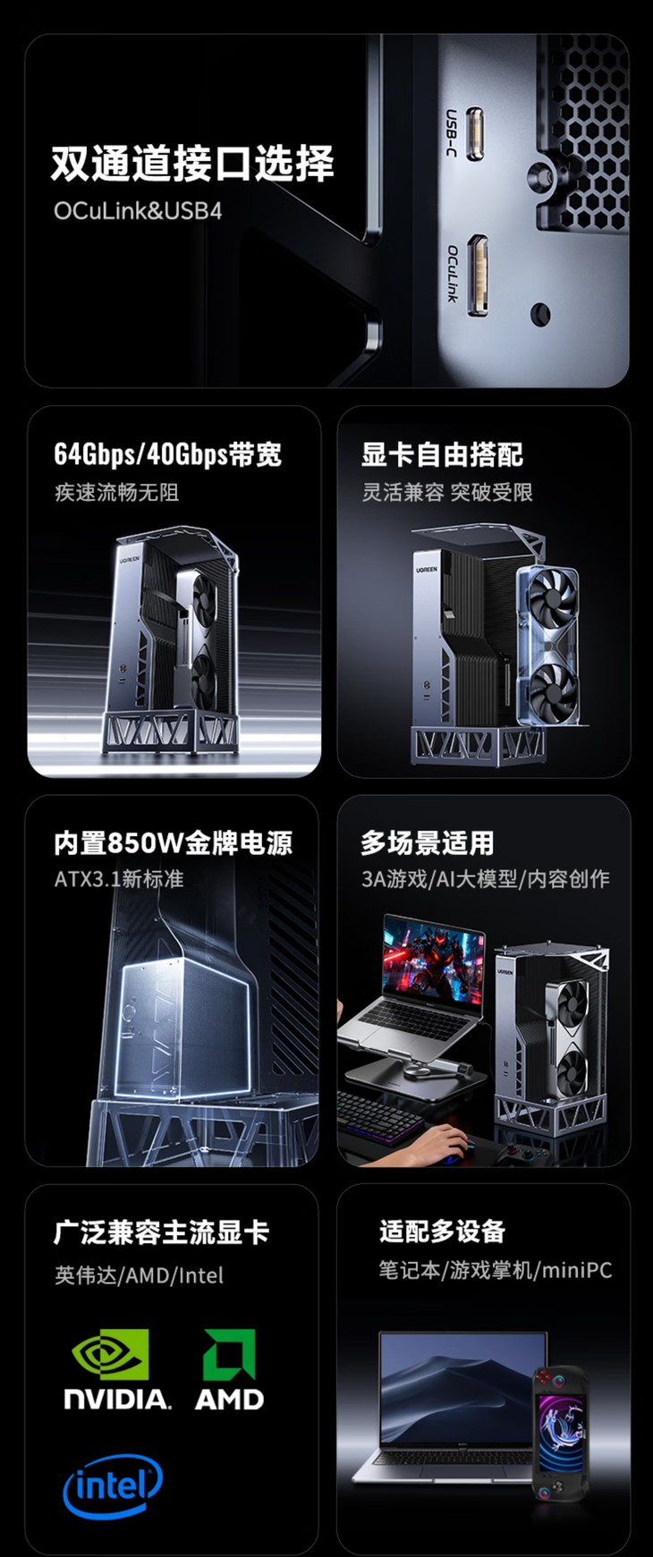 绿联推出其首款显卡扩展坞,自带850W电源+OCuLink+USB4售2299元
