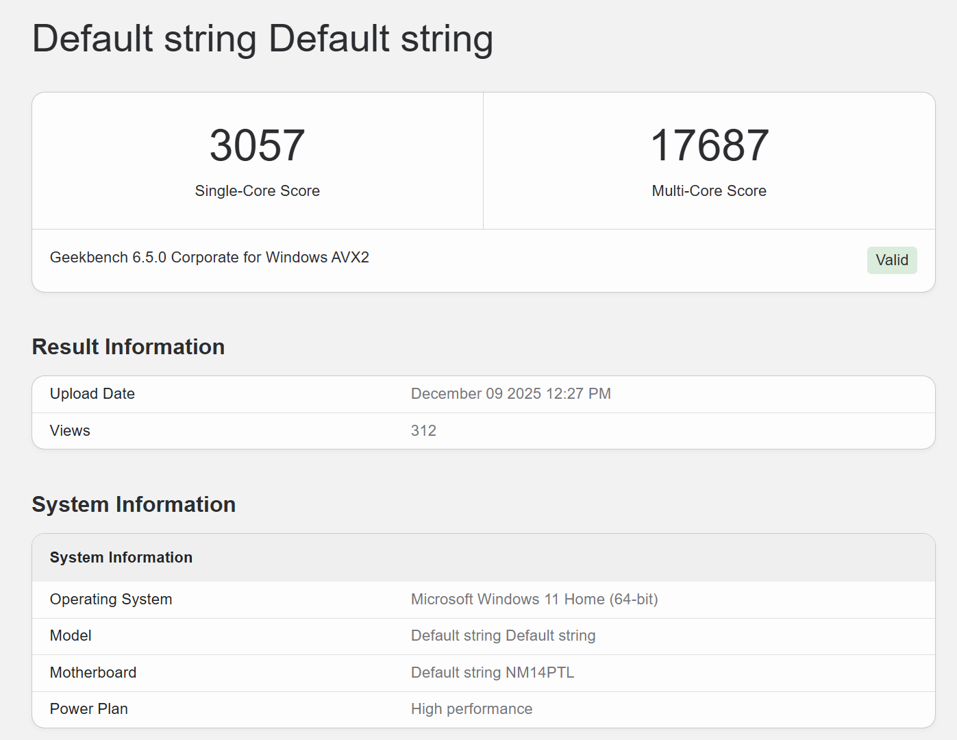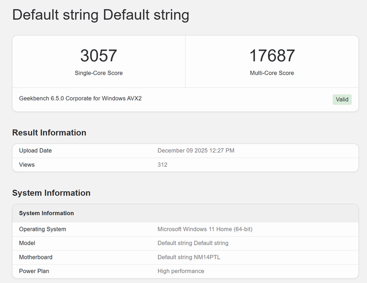 据Geekbench 6.5测试结果显示,这款处理器在单核测试中取得3057分,多核测试中斩获17687分。从规格来看,Core Ultra X9 388H采用16核设计,包含4个性能核心、8个能效核心和4个低功耗能效核心(LP-E),基础频率为4.0GHz,最高加速频率可达5.1GHz。此外,它配备18MB共享L3缓存,测试平台搭载63.5GB系统内存,并集成12核心的Arc B390 Xe3核显,默认TDP为25W,turbo模式下功耗范围在65 - 80W之间。测试平台使用的是内部代号为“Default string”的NM14PTL主板,属于Panther Lake测试平台,而非零售笔记本设计。