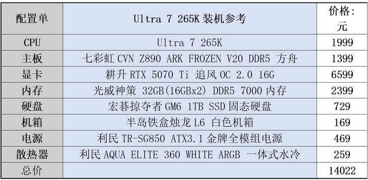 随着价格的降低,它已成为组建中高端创作和游戏主机的明智之选,特别适合对新技术、AI应用有需求的用户。目前搭配Ultra 7 265K装机时可以选择搭配次旗舰一级的显卡以及扩展更出色的Z890主板,带来更加全面的旗舰游戏体验。下面同样为大家推荐一套较为适配Ultra 7 265K装机需求的配置,大家也可以根据自己的使用需求做出更多修改。